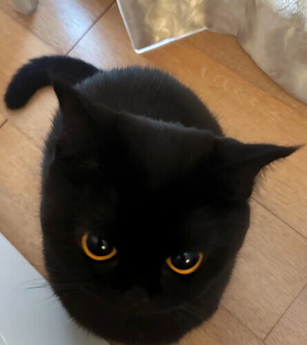 The little black cat is really cute.